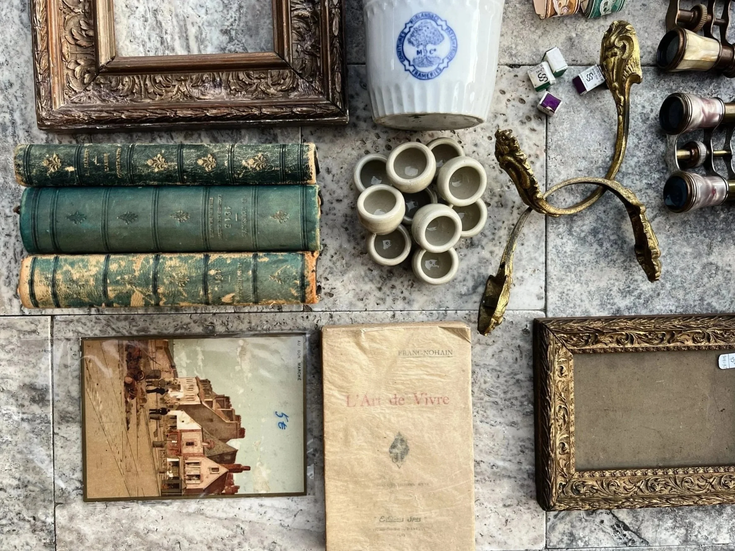 We’ll begin with a guided art workshop using the antique papers and ephemera I collected at the flea market, layering history into new work in my studio. Afterward, we’ll sit down to a beautifully styled lunch set with French antiques found at the markets — linens, pitchers, frames, and quiet details that hold the character of Paris. The pieces on the table will be available for purchase.